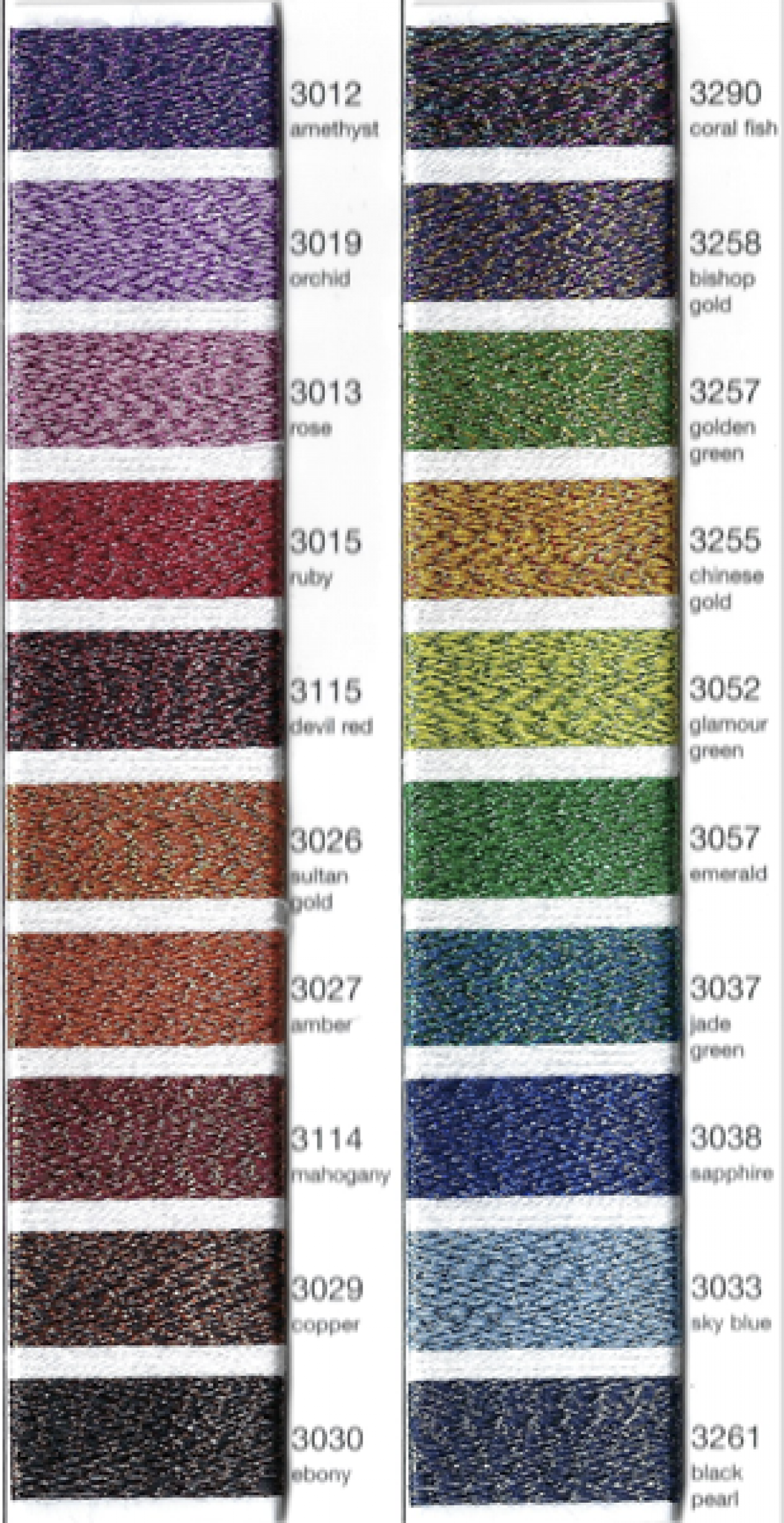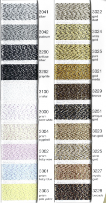 A metallic thread in a range of 40 sparkly shades